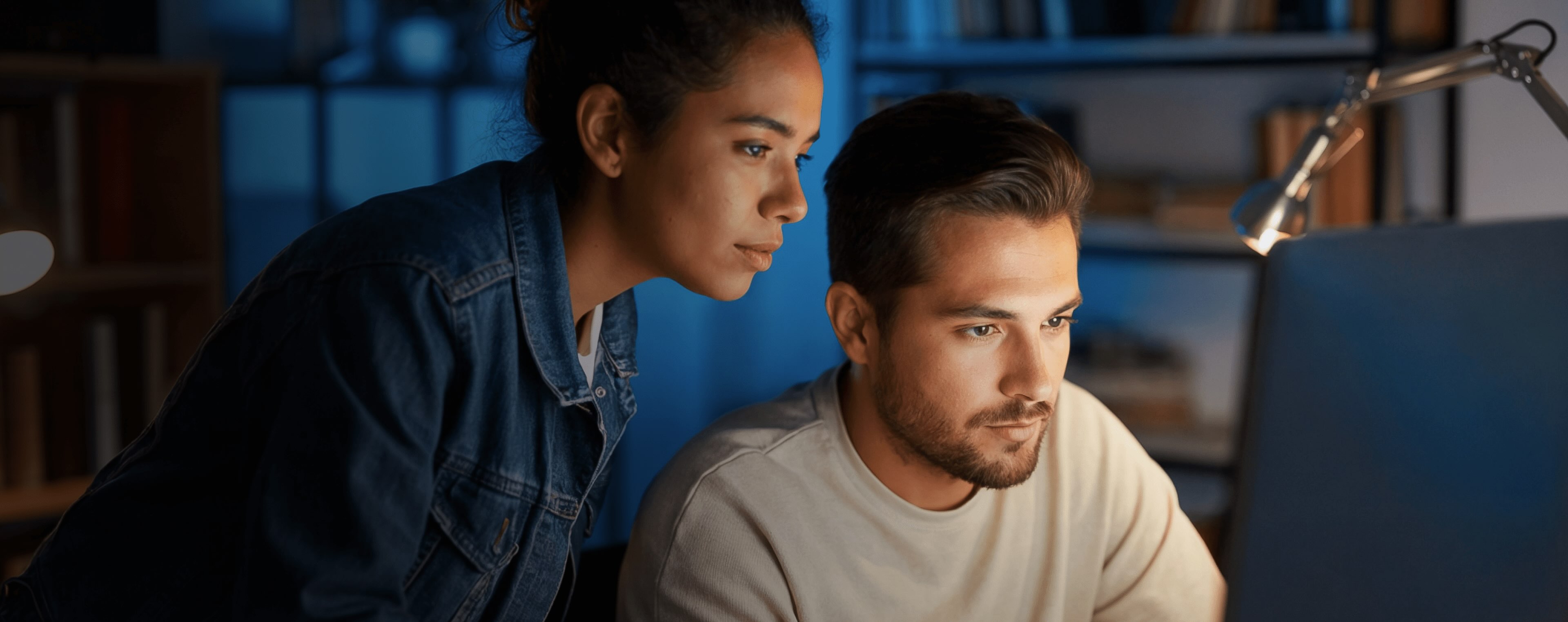 Man and woman with HP 168官方澳洲幸運5結(jié)果體彩網(wǎng) laptops in an office, participating in a meeting and sharing ideas.